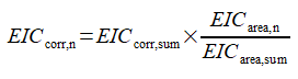 EICcorr, sum | Result of polynomial equation for EICarea,sum |