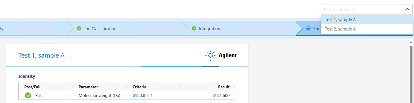 Review the results for each of the tested samples. Use the drop-down field at the top to select a sample.