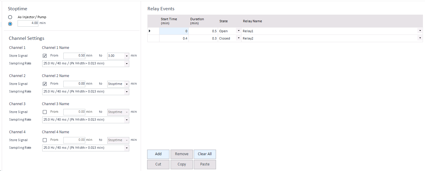 Enter the Stop Time in minutes for this device, or select As injector/Pump, if run time is specified by injector/pump.
