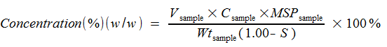 次に、濃度 (%) (w/w) が以下の式で計算されます。