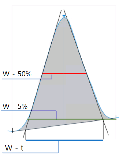 높이의 5%에서의 폭(테일링 피크 폭)으로, USP 테일링 인자에 사용됨