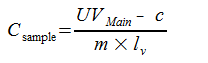 먼저, 시료에서 UV 순수 물질의 농도는 다음 요인으로 계산됩니다.