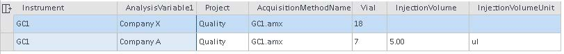 For each line (template) a set of parameter values is defined (for example, Instrument, Project). All the parameters that can be defined in template are displayed in this table (except Identifier and Replicates), and are assigned a value.