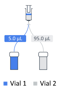 The sample is taken from the position specified in the sample information or sequence/worklist. The mixture is prepared within the needle and directly injected. For more details, mark the Advanced check box at the top right of the workflow view to display the injector program in the advanced view.