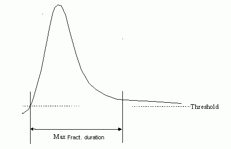 Peak-based | Fractions will be collected based on the peak detection parameters. For peak-based fraction collection, specify a maximum peak duration (in minutes) in the max. peak duration field. This parameter can be used to stop the fraction collection in cases where the baseline drifts and the signal does not drop below the specified threshold value. Default is 0.5 min; limits are from 0.1 min to 9999.0 min.