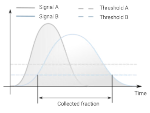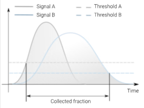 Use the Trigger Combinations to specify how multiple peak triggers are combined to start or stop Fraction Collection. The graphic above the option shows the collection period.