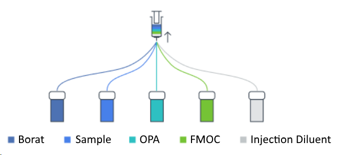 The OPA/FMOC-protocol for AAA workflow allows you to perform the derivatization of the amino acids directly in the needle/loop prior to injection. This procedure is described in the Application Note 5994-2189.