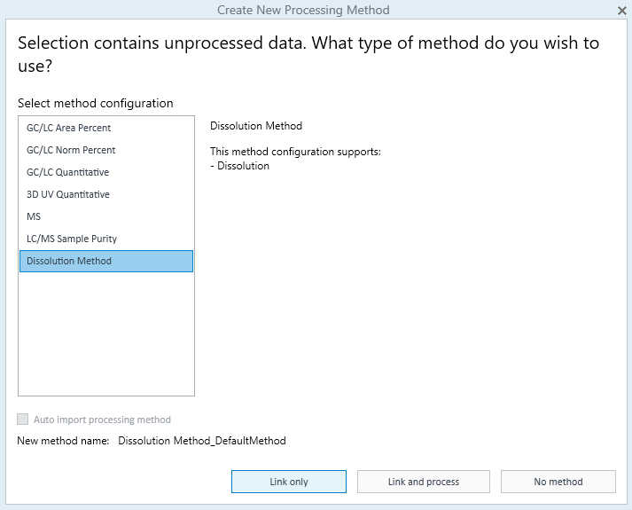 4. Before you can see the processed data you have to link a processing method (see Link a processing method).
