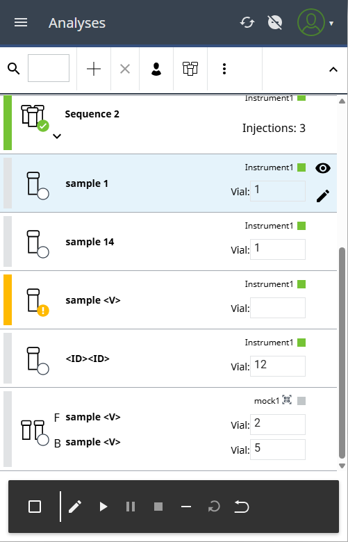 Click or tap the icon corresponding to the action you want to perform. If your action triggers a change in the state of an analysis or sequence, you will be notified that the changes have been saved.
